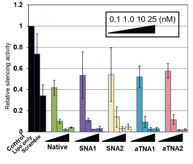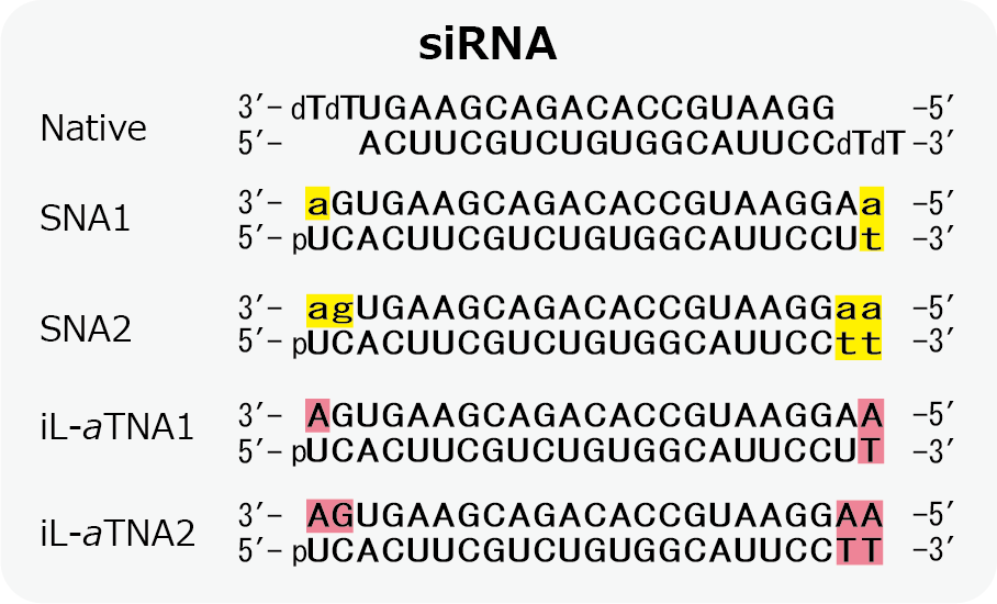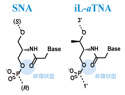 名古屋大学 生命分子工学専攻 分子生命化学講座 浅沼研究室が開発した、従来の人工核酸を凌駕する非環状型人工核酸 SNA や iL-aTNA 導入オリゴヌクレオチドをご紹介します。