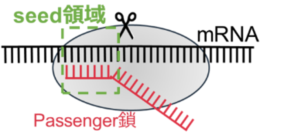 Passenger鎖のseed領域によるoff-target効果が大幅に抑制